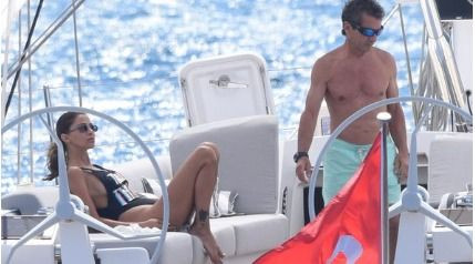 Türkbükü'ne demirli olan yelkenli teknede güneşlenen ikili daha sonra botla bir mekana geçip arkadaşlarıyla buluştu.