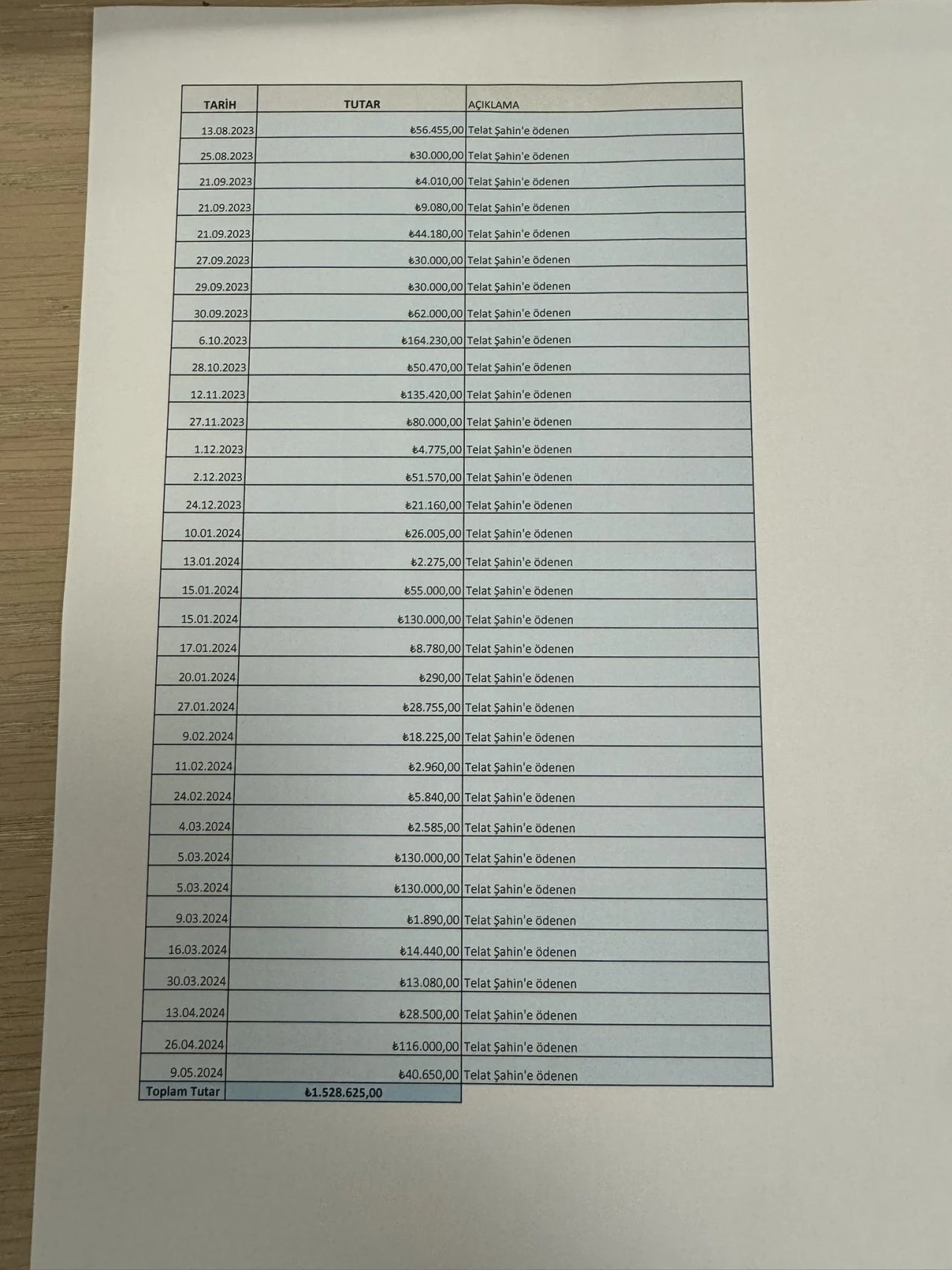 Yine Sancak'ın iddiasına göre, Telat Şahin’e 13 Ağustos 2023-9 Mayıs 2024 tarihleri arasında 34 farklı tarihte toplam bir milyon 528 bin 625 liralık bir ödeme yapıldı.