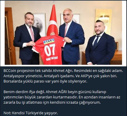Coin dolandırıcılığına bir yenisi daha eklendi. AK Parti'ye yakınlığıyla bilinen, bakanlarla fotoğraflarını paylaşan Antalyalı iş insanı ve eski Antalyaspor yöneticisi Ahmet Ağrı'nın BCCoin ismiyle kurduğu kripto para birimi battı.