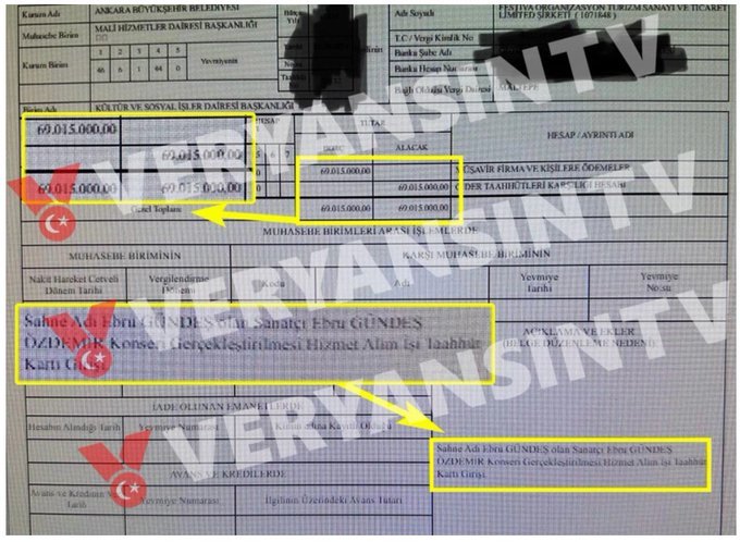 Ankara Büyükşehir Belediyesi'nin 29 Ekim Cumhuriyet Bayramı etkinlikleri kapsamında Ebru Gündeş'e 69 milyon lira ödeme yaptığı iddiası gündeme geldi.