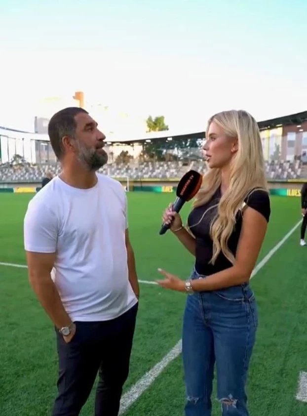 Müsabaka sonrası kulüp televizyonuna röportaj veren Arda Turan, 24 yaşındaki Ukraynalı muhabir Daria Bondar Savina ile ayakta sohbet ederken göz teması kurmayı resmen unuttu.