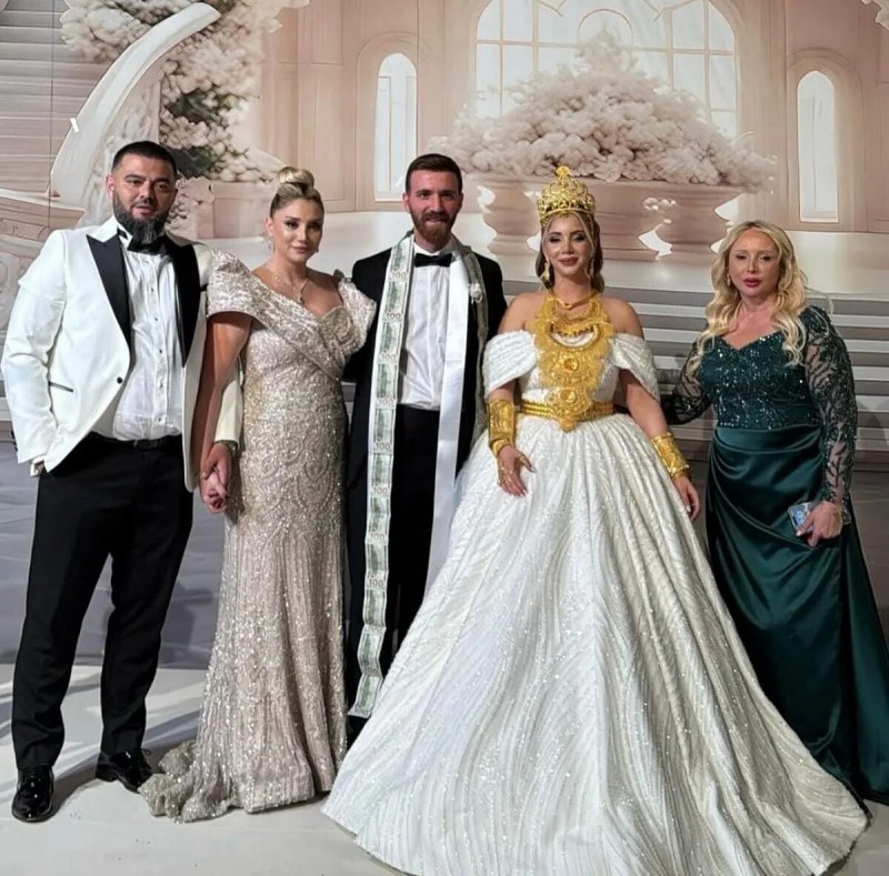 Boynuna dizilen onlarca altın kolye, bilezikler, setler ve gösterişli takılarla göz kamaştıran genç şarkıcıya takılan en dikkat çekici parça ise özel tasarım altın taç olmuştu.