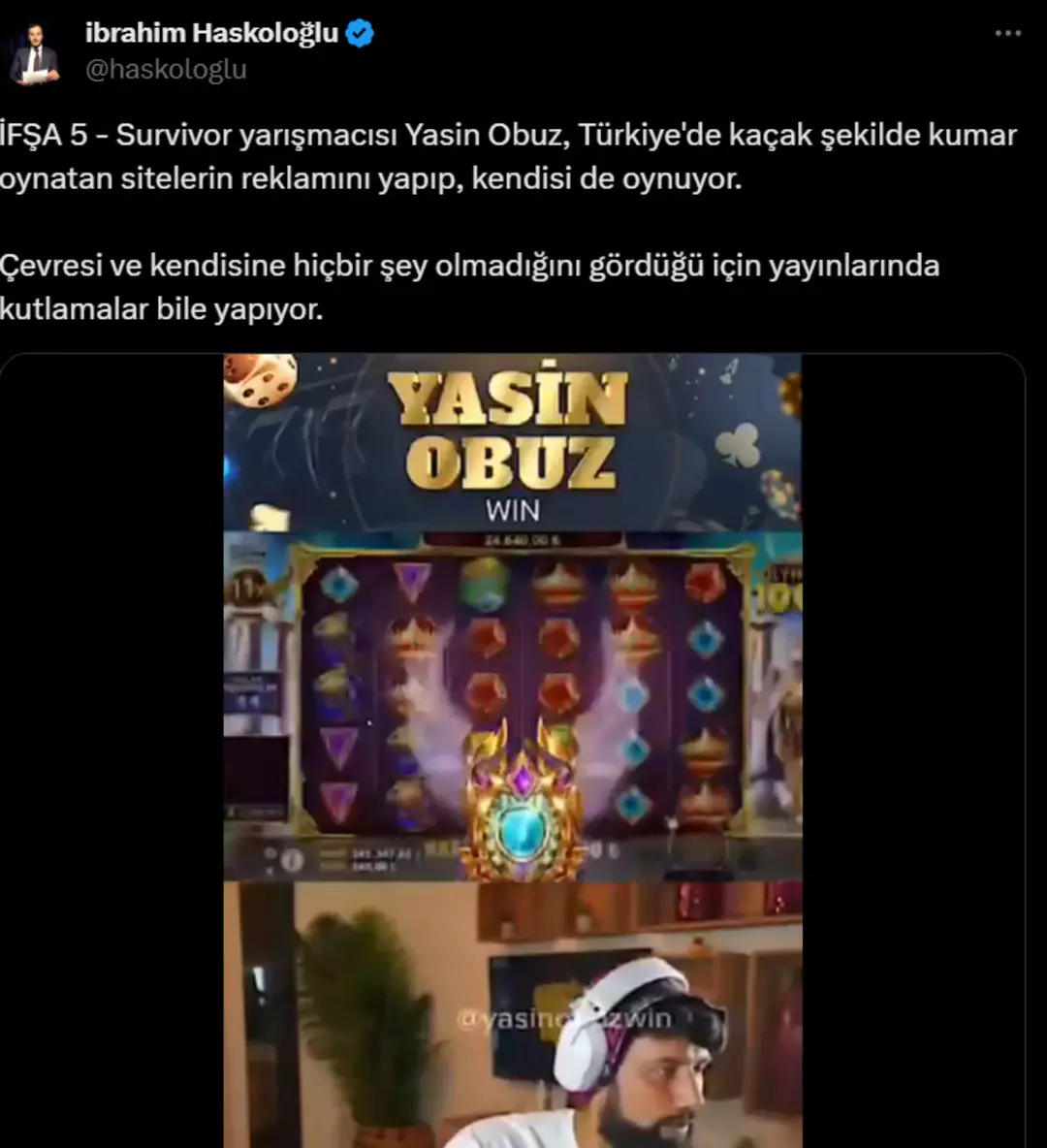 Gündemi sarsan olayın ardından da gazeteci İbrahim Haskoloğlu, sosyal medyada bahis reklamı yapan başka fenomen isimlerin olduğunu söyleyerek tek tek ifşa etmeye başladı. Görüntüleri yayınlanan ve bahis reklamı yapan isimlerden biri de Survivor ve MasterChef yarışmalarıyla tanınan Yasin Obuz'du. Ünlü ismin geçtiğimiz günlerde yurt dışına gitmesi akıllarda soru işareti bıraktı.