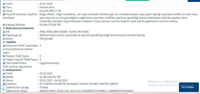 MedyaRadar’dan Ercan Öztürk’ün haberine göre, Bodrum Belediyesi’nin 12 Aralık 2024 yılında üç yıllık araç kiralama ihalesi düzenledi.