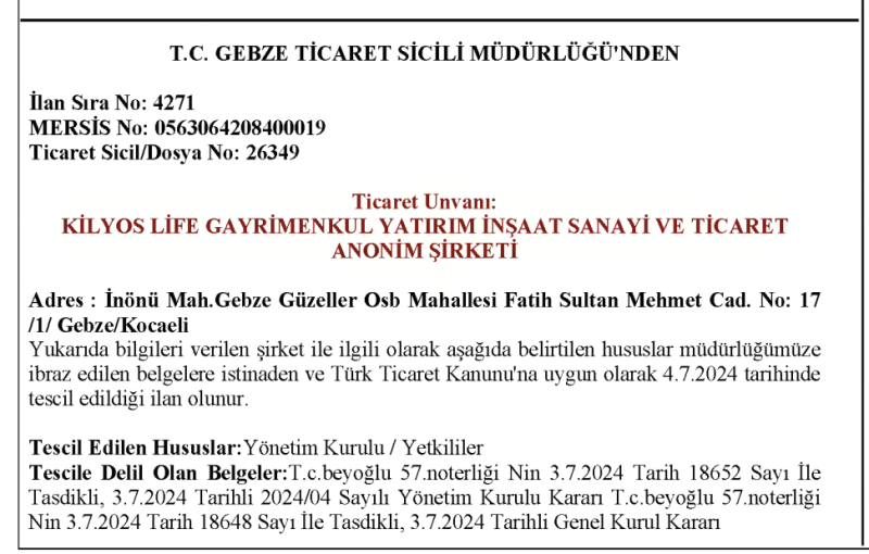TİCARET SİCİL GAZETESİNDE YAYINLANDI