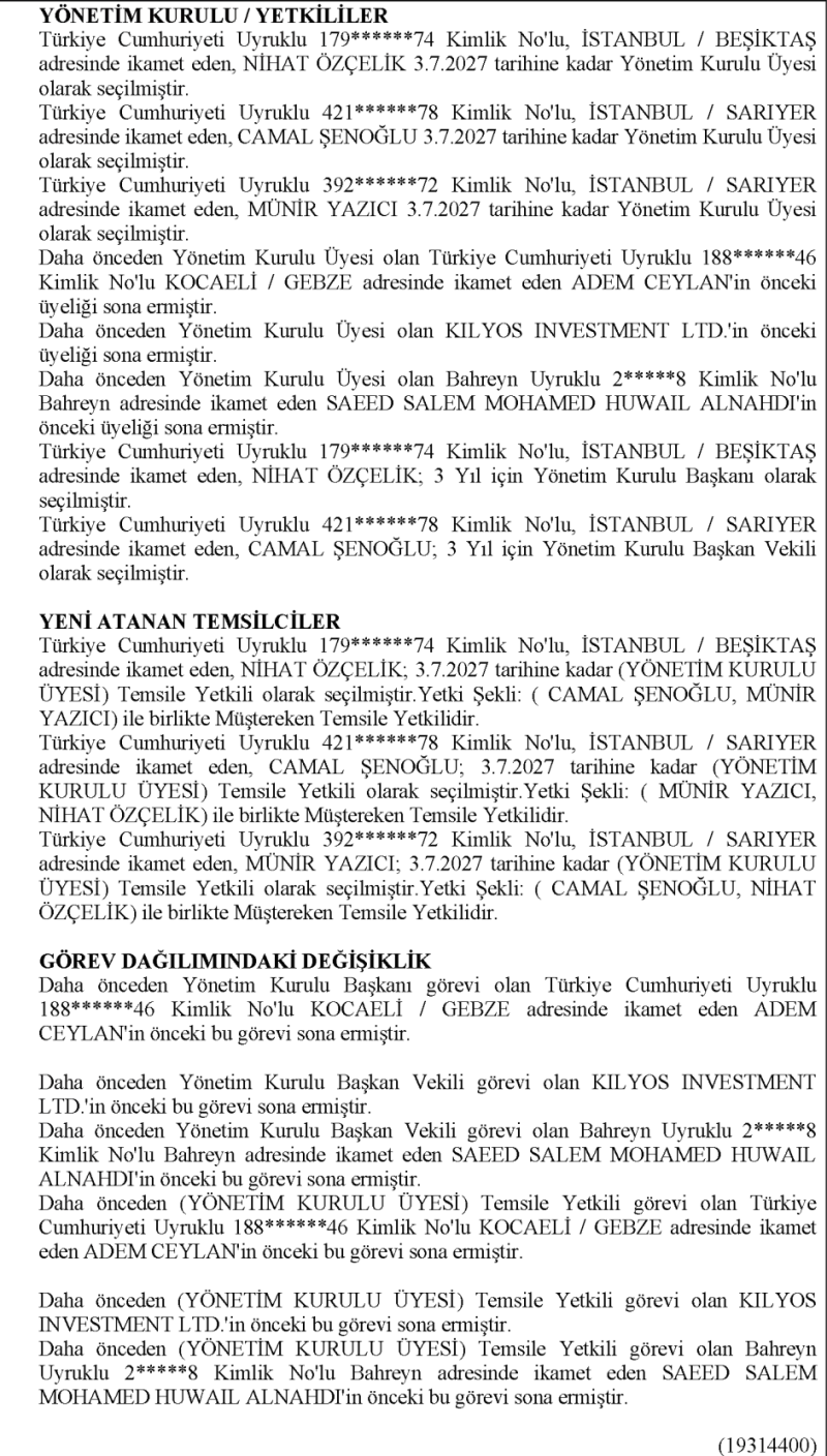 Ticaret sicil gazetesine göre şirketin yeni başkanı Nihat Özçelik olarak dikkat çekiyor.