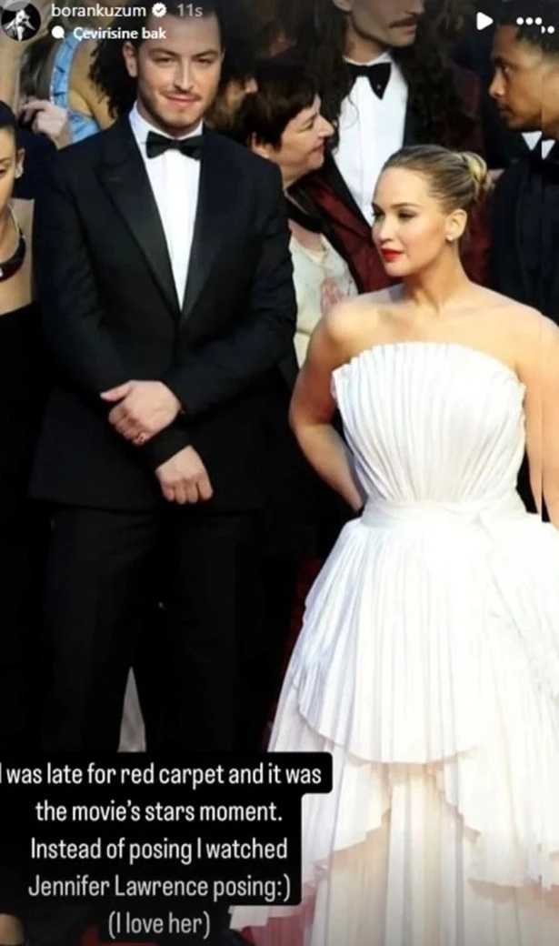 Geçtiğimiz günlerde Jennifer Lawrence'in film galasına geç kaldığını belirten oyuncu, "Bu sefer yetiştim." notuyla paylaşım yaptı.