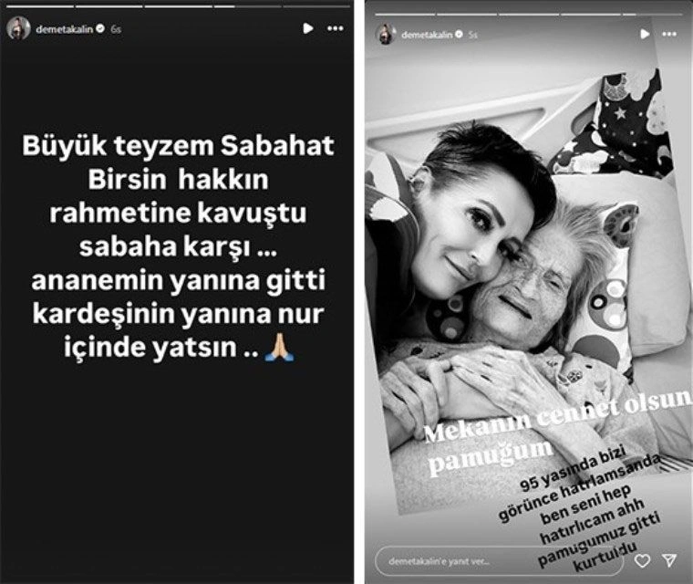 Akalın, paylaşımında "Büyük teyzem Sabat Birsin, sabaha karşı hakkın rahmetine kavuştu. Anneannemin yanına, kardeşinin yanına gitti. Nur içinde yatsın." ifadelerini kullandı. Ardından, "Mekânın cennet olsun pamuğum. 95 yaşında bizi görünce hatırlamasan da ben seni hep hatırlayacağım. Ahh pamuğumuz gitti, kurtuldu" sözleriyle üzüntüsünü dile getirdi.