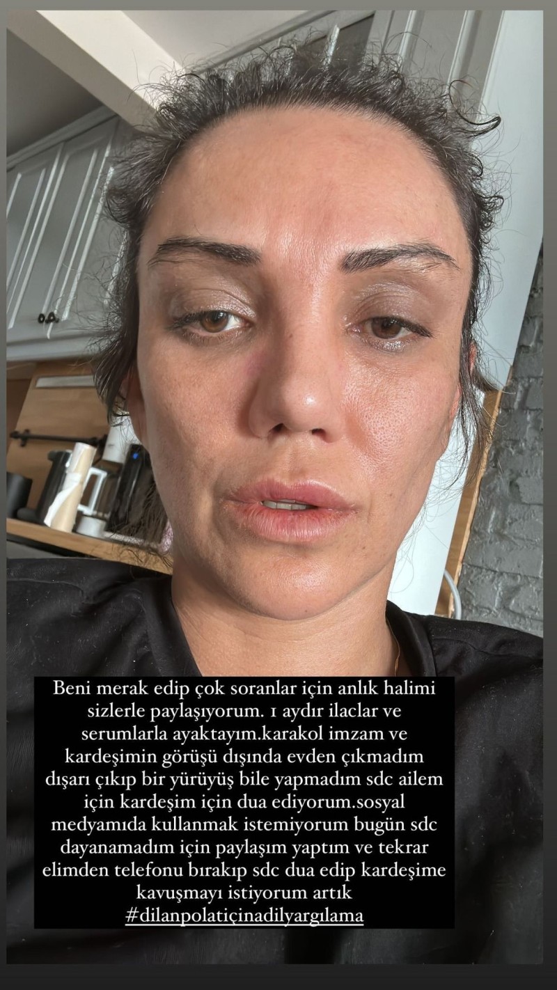 Son halini paylaşan Sıla Doğu 'Bir aydır ilaçlarla ve serumlarla ayaktayım. Karakol imzam ve kardeşimin görüşü dışında evden çıkmadım. Dışarı çıkıp bir yürüyüş bile yapmadım. Sadece ailem için kardeşlerim için dua ediyorum. Kardeşime kavuşmayı istiyorum artık' ifadelerini kullandı.