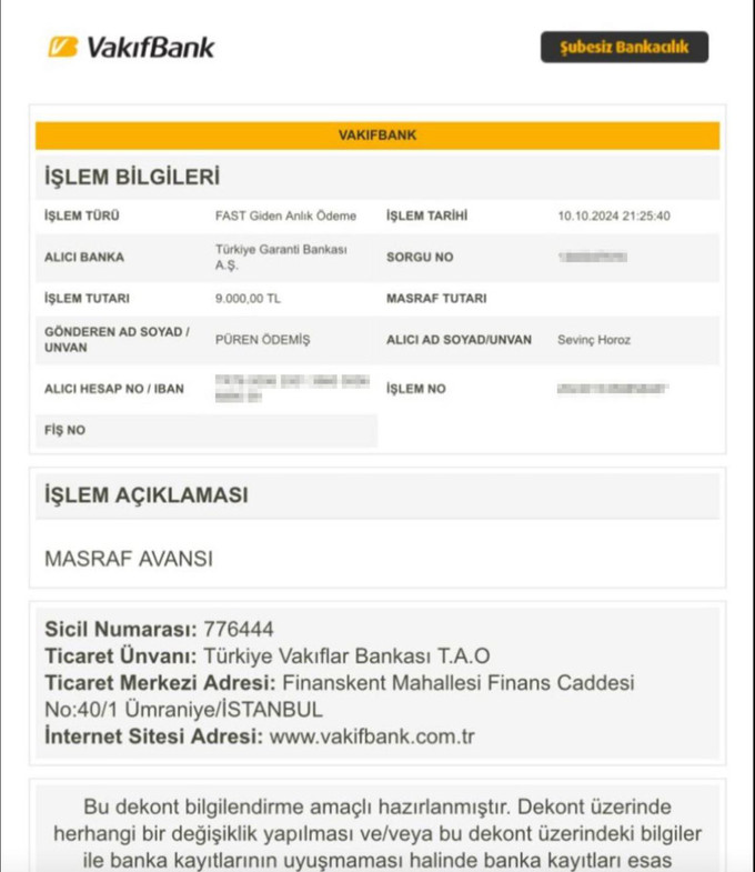 Şikayet dilekçesinin eklerinde ise şu ifadelere yer verildi: ‘’Avukat Sevinç Horoz tarafından Polat ailesinin yönlendirmesiyle şubelerden topladığı ve bizzat Sevinç Horoz’un şube sahiplerinin şahsi hesaplarından kendi hesabına "masraf avansı" açıklamasıyla gönderilmesini talep ettiği, "birebir görüşmeler, röportajlar, yazılı/sözlü açıklamalar ile basın ve kamuoyu ile sağlıklı ilişki kurmak, basınla temasın sağlanması, ilişkilerin yürütülmesi" amacına yönelik açıklamasıyla yaklaşık 1 milyona yakın parayı topladığına ilişkin WhatsApp görüşmelerini içerir ekran görüntüleri Sevinç Horoz hesabına şube sahiplerinin şahsi hesaplarından gönderdikleri "masraf avansı" açıklamalı ödemelere ilişkin dekontlar ve ödeme gönderen şubelerin listesi’’