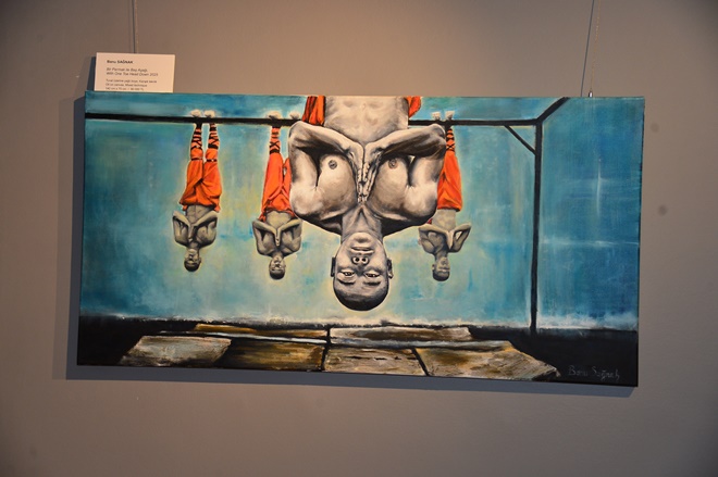 Aralık ayı boyunca ziyarete açık kalacak “Dönüşüm” sergisinde toplam 17 eser bulunuyor. Keşiş figürleri, çocuk temaları, soyut ruhsal yansımalar ve Atatürk portreleri serginin omurgasını oluşturuyor. Sanatçı ayrıca, kullanılmayan büyük reklam baskılarını dönüştürerek eserlerine yeni bir hayat veriyor. Böylece hem malzeme hem de düşünsel anlamda “yeniden doğuş” temasını güçlü şekilde vurguluyor.