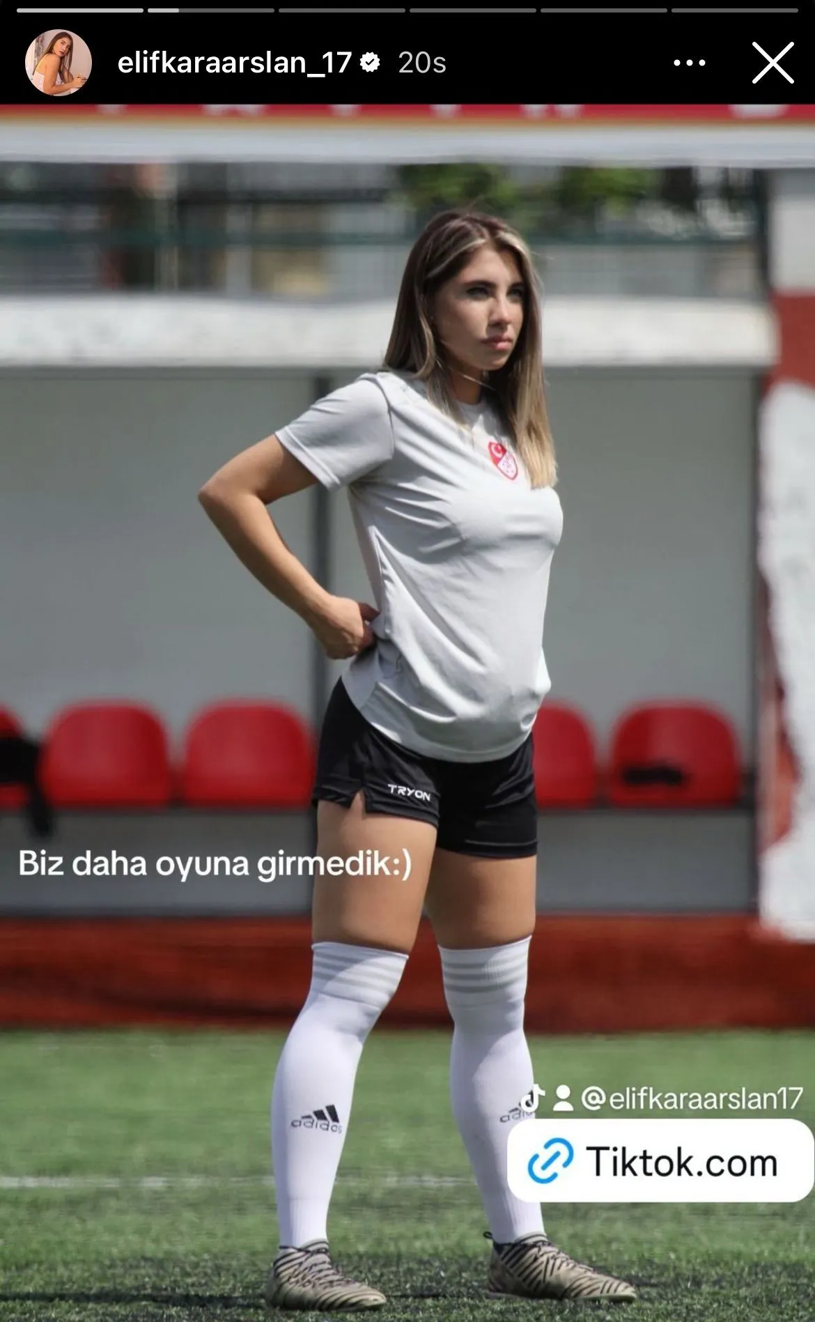Elif Karaarslan son olarak TikTok'tan yaptığı paylaşım ile dikkatleri üzerine çekti. Karaarslan, hakemlik döneminden bir fotoğrafını paylaşarak Kurtlar Vadisi dizisinde Polat Alemdar rolüyle hafızlarda yer edinen Necati Şaşmaz'ın seslendirdiği bir kesiti koydu. Elif Karaarslan fotoğrafına "Biz daha oyuna girmedik" notunu düştü.
