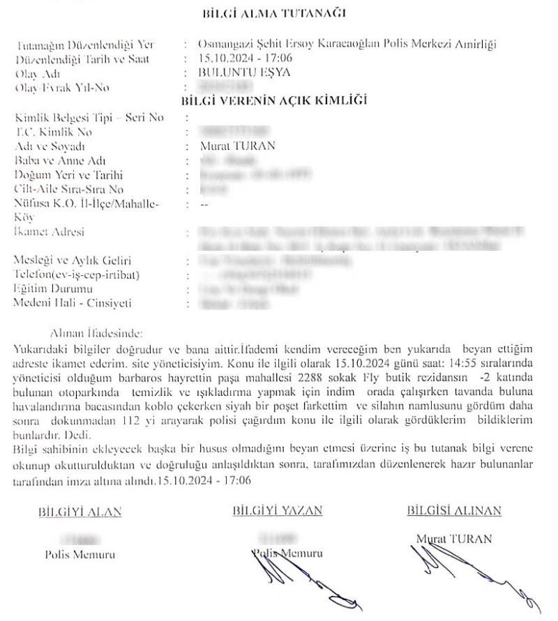 Site yönetimi, güvenlik kameralarına yansıyan çok sayıda kamera kaydını hazırladığı bir dilekçeyle savcılığa sundu. O kayıtların birinde site çalışanlarına, ’Benim gelmem normal değil. Sana böyleyim ama Kürşat’ı paramparça ederim. Bunu da tehdit olarak algılayın’ dediği görülüyor. Bir başka kamera kaydında ise 11 ay tutuklu kaldıktan sonra tahliye olan bir örgüt üyesinin bir kadına ağza alınmayacak küfürler savuruyor. Sitenin temizlik görevlisi eksi ikinci katta temizlik yaparken tavan arasına bir poşet içerisinde zulalanmış pompalı silah buldu. Bulunan silah bir tutanakla polise teslim edildi.