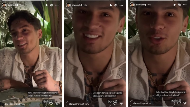 Ala'nın sadece Çakal'ı çekip 'Kolye 3 şarkı karşılığı playback yaparak aldığın yüzlerce bin liradan mı?' yazdığı hikayeyi Instagram storysinde yayınladı.