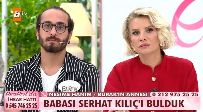 Esra Erol dakikalar içinde biyolojik baba Serhat Kılıç ve ailesine ulaştı. Canlı yayına bağlanan Serhat Kılıç, yıllarca oğlunu aradığını fakat anne Nesime’nin “çocuğun babası sen değilsin” diyerek buna engel olduğunu söyledi. “Sen benim ilk aşkımdın. Yıllarca bu olayın peşinden koştum. Senden sonra evlendiğim kişi bile Burak’ı aradı. ” Diyerek isyan etti.