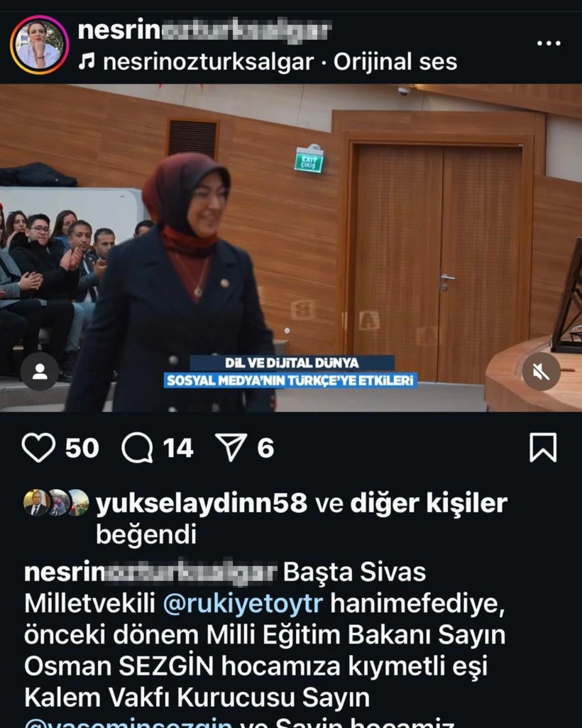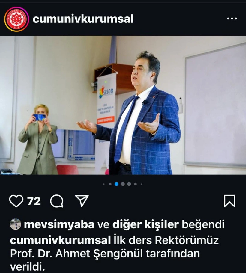 Sivas Cumhuriyet Üniversitesi'nde önceki gün düzenlenen bir etkinlik üniversitenin resmi sitesinden paylaşıldı. ‘’Sivas Milletvekili Rukiye Toy’un öncülüğünde’’ ifadelerine yer verilen paylaşımda ilginç bir ayrıntı dikkat çekti. Sınavda başarısız olan Nesrin S., Prof. Şengönül’ün konuşmasını telefonuyla videoya kaydederken çekilmiş fotoğrafı üniversitenin kurumsal hesabından paylaşılması dikkatlerden kaçmadı.