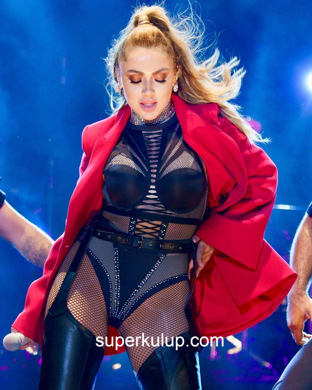 Süper mini elbisesiyle sahneye çıkan şarkıcı, izleyenlerin hem gözlerinin hem de kulaklarının pasını silen performansıyla geceye damgasını vurdu.