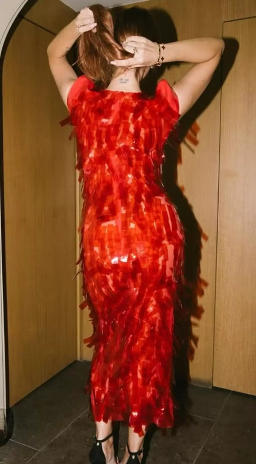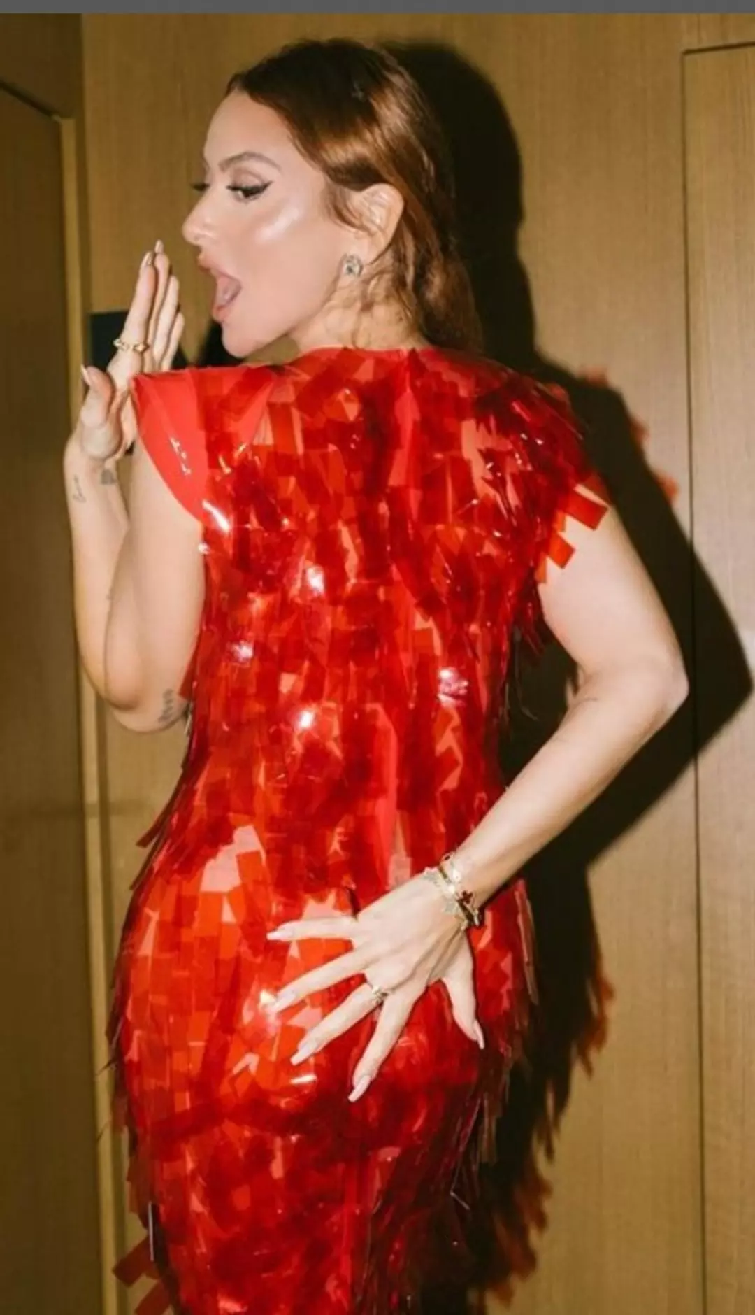 Ünlü isim şimdide katıldığı özel bir geceden pozlarıyla dikkat çekti. Kırmızı konfeti detaylı bir elbise ile geceye katılan Hadise vücudunu saran elbisesiyle arkasını dönerek pozlar verdi.