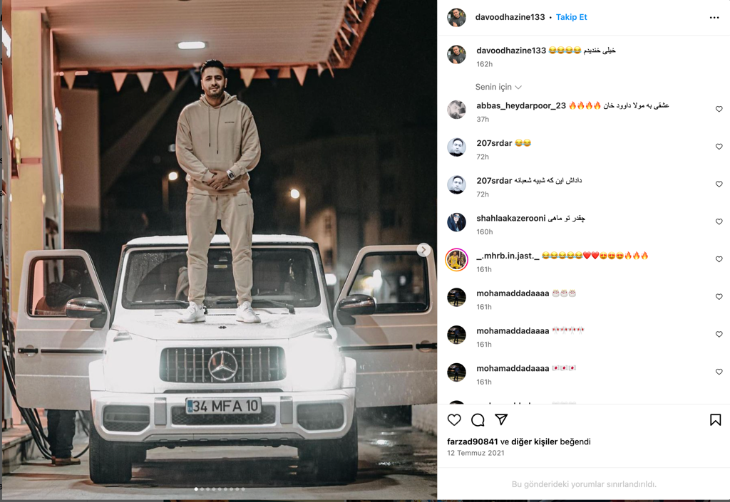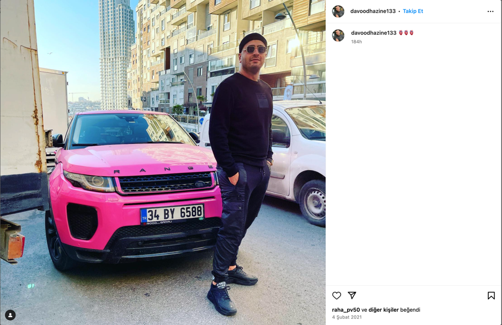 Davoud Ghaffari, lüks otomobillere çok meraklı. Parasının kaynağını kimsenin sormadığı Türkiye’de lüks araçlarını sergilemekten büyük keyif alıyordu. Cipini pembeye boyatarak ilgiyi daha da arttırmıştı. Pırlanta görünümü verdiği lüks otomobilinin ise videolarını paylaşıyordu.