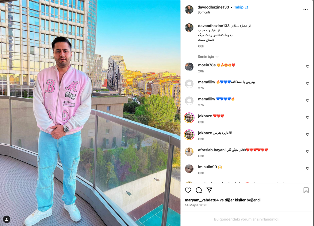 Sadece ‘davoodhazine133’ isimli Instagram hesabının kendisine ait olduğunu kabul etti. Diğer sosyal medya hesaplarının kendisine ait olmadığını savundu.