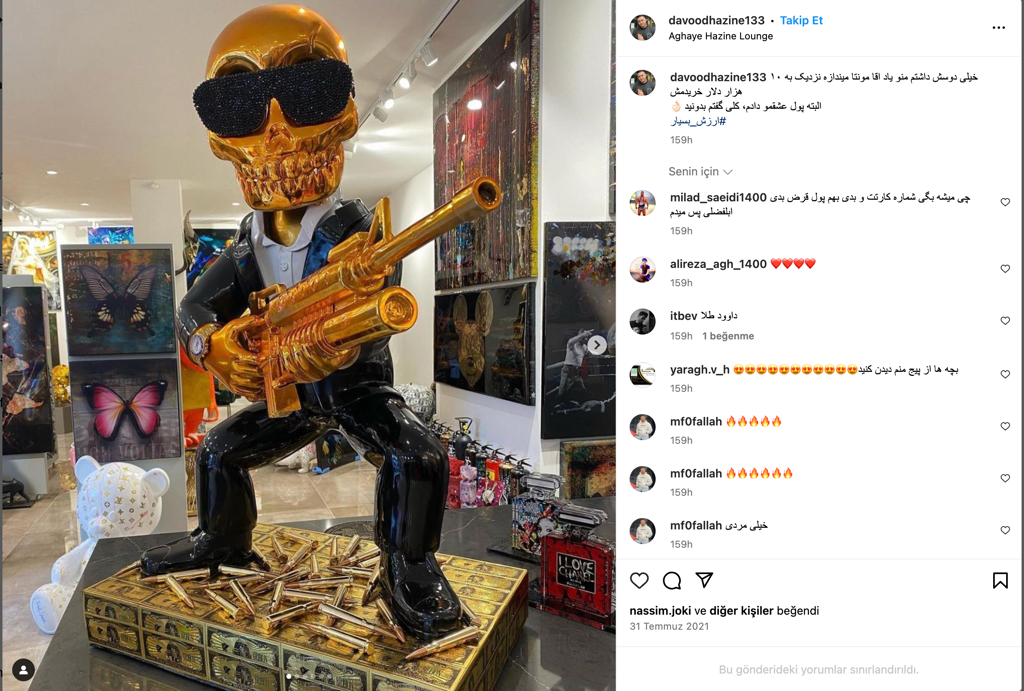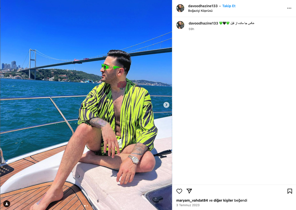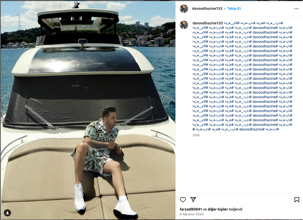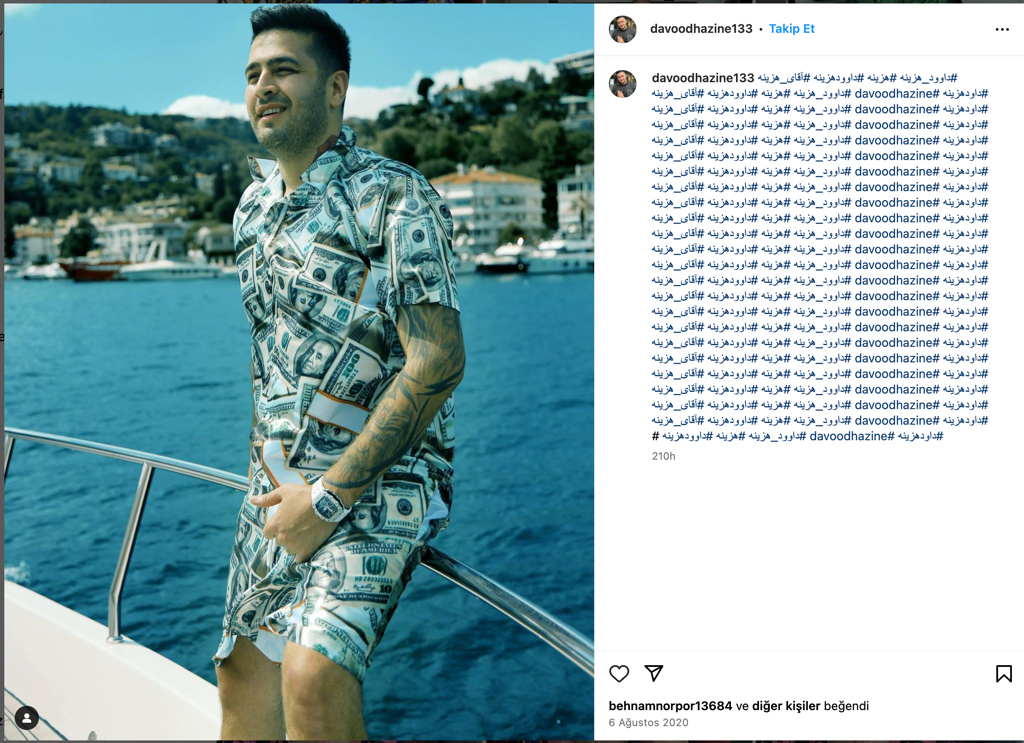 İranlı yasa dışı bahis ve dolandırıcılıktan kazandığı paralarla yaptığı alışverişleri de sosyal medya hesabından çok sık paylaşıyordu.