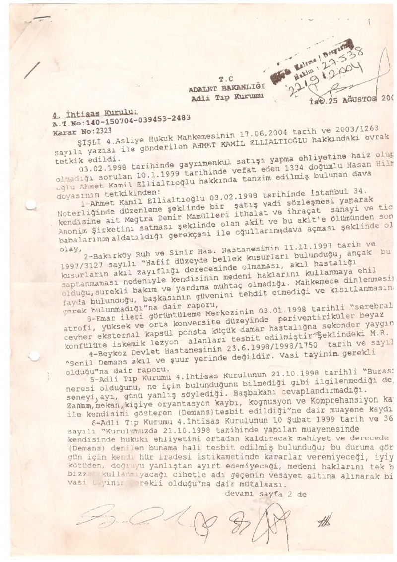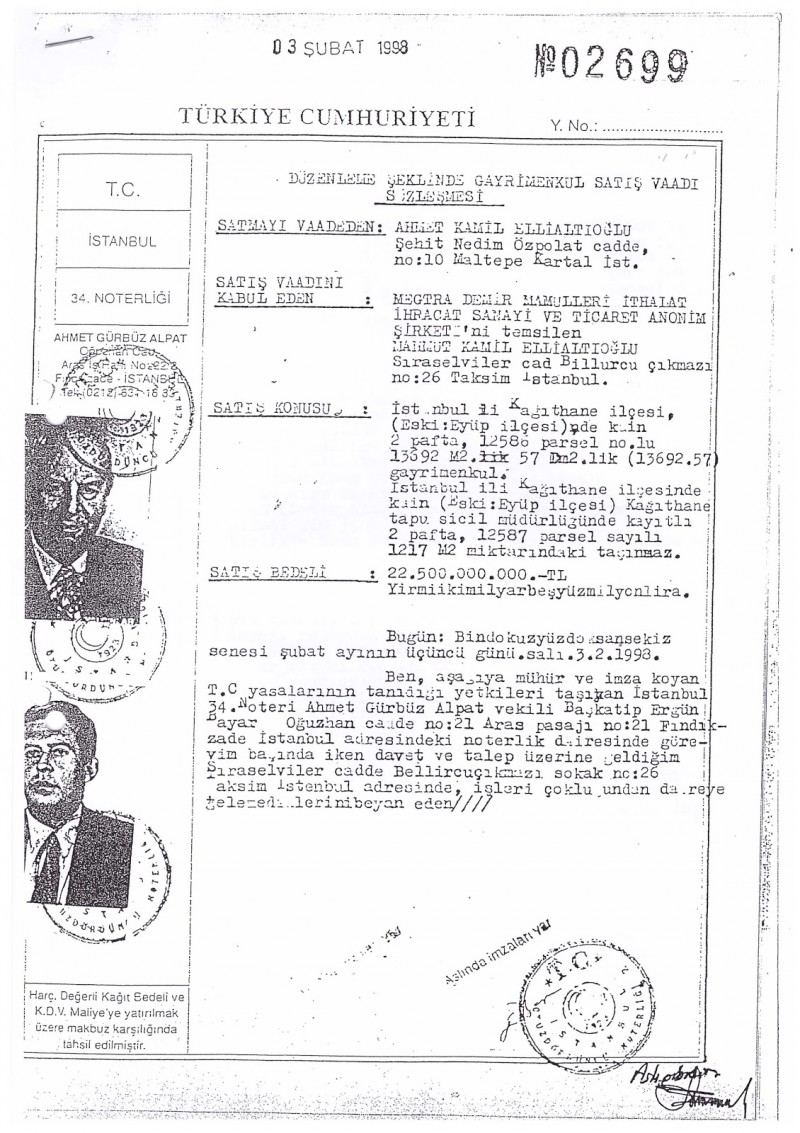 Mahmut Kamil Ellialtıoğlu'nun, baba ve ağabeyini dolandırma amaclı yaptığı sahte satış vaadi ile kendi ve ortakları, (eski karısı İ. Esra Türsen (Kayatürk) ile kızı Serra Emine Ellialtıoğlu) nın sahip olduğu Megtra A.Ş'ye, babasının tüm mal varlığını geçirme teşebbüsü adalete yakalandı.