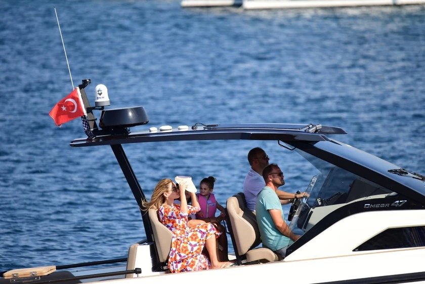 Bodrum’un en güzel koylarından Hebil Koy’da bulunan evlerinden botla ayrılarak Türkbükü koylarında bir tur atan aile daha sonra Türkbükü Sahili'nden dondurma alıp botta dondurma keyfi yaptılar.