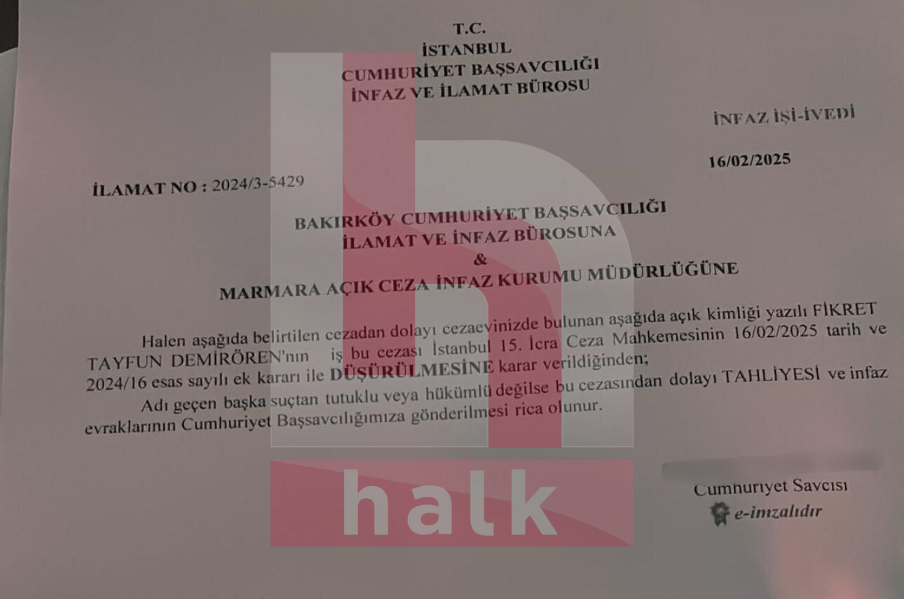 Bu başvurlar üzerine mahkeme, düşme kararı verdi. Bu kararla birlikte Demirören için tahliye yolu da açılmış oldu. İstanbul Cumhuriyet Başsavcılığı İnfaz ve İlamat Bürosu, cezaevine yazı gönderdi. Demirören’in kısa süre içinde dışarı çıkması bekleniyor.