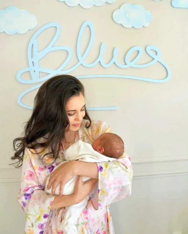 34 yaşındaki şarkıcı, 11 Nisan'da oğlunu kucağına aldı.