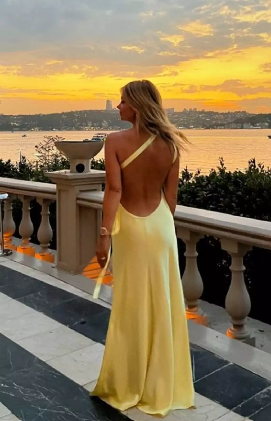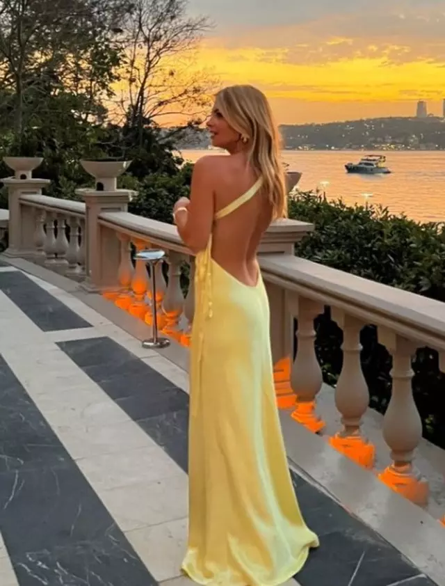 Sosyal medyayı oldukça aktif kullanan ünlülerden biri olan Pelin Karahan sarı derin sırt dekolteli elbisesiyle gün batımında arkasını dönerek peş peşe pozlar verdi.