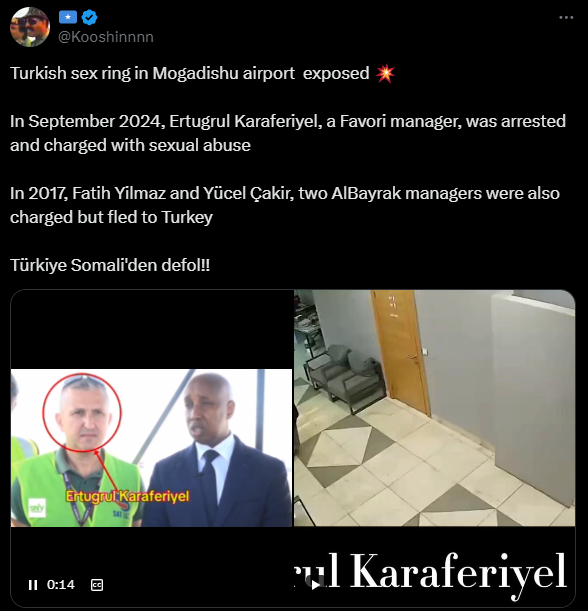 Somali medyası, şirkette çalışan dört kadının İnsan Kaynakları Müdürü Ertuğrul Karaferiyeli hakkında cinsel taciz suçlamasıyla şikâyette bulunduğunu ve Karaferiyeli’nin tutuklanmasından önce de aynı suçlamayla devam eden bir davası da olduğunu öne sürdü.