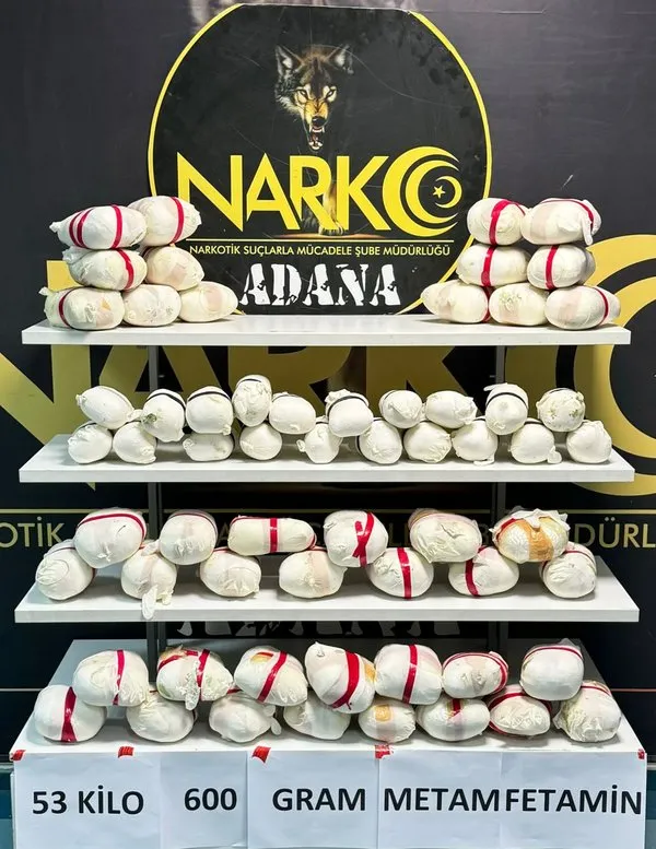 Adana'da polis, kente yüklü miktarda uyuşturucu getirildiği belirlenen hafif ticari aracı durdurdu. Arıkovanı taşınan araçta narkotik köpeğiyle 'Aşil' ile arama yapıldı. Köpek, kovanlara tepki vermesi üzerine araçta bulunan 2 şüpheli, "Bagajdaki arı kovanlarında bal petekleri bulunuyor. Kraliçe arımızla birlikte kovanlar içerisinde arıları taşıyoruz" dedi. Kovanların içini açan narkotik polisi, peteklere gizlenmiş 62 pakette 53 kilo 600 gram metamfetamin ele geçirdi. Olayda ilgili gözaltına alınan 2 kişi uyuşturucuyu paraya ihtiyaçları olduğu için taşıdıklarını itiraf etti. Adliyeye sevk edilen 2 zanlı tutuklanarak cezaevine konuldu.