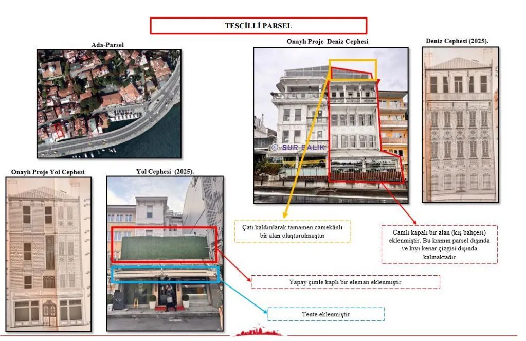 İstanbul’un Beşiktaş ilçesindeki Bebek, Arnavutköy, Kuruçeşme ve Ortaköy mahallelerinde, Bebek Camii’nden başlayarak 15 Temmuz Şehitler Köprüsü yönüne uzanan kıyı boyunca bazı yapıların denize doğru izinsiz biçimde genişletildiği, kat ilaveleri yapıldığı ve cephe yenilemeleri gerçekleştirildiği yönünde Koruma Bölge Kurulu Müdürlüğü’ne çok sayıda ihbar ulaştı.