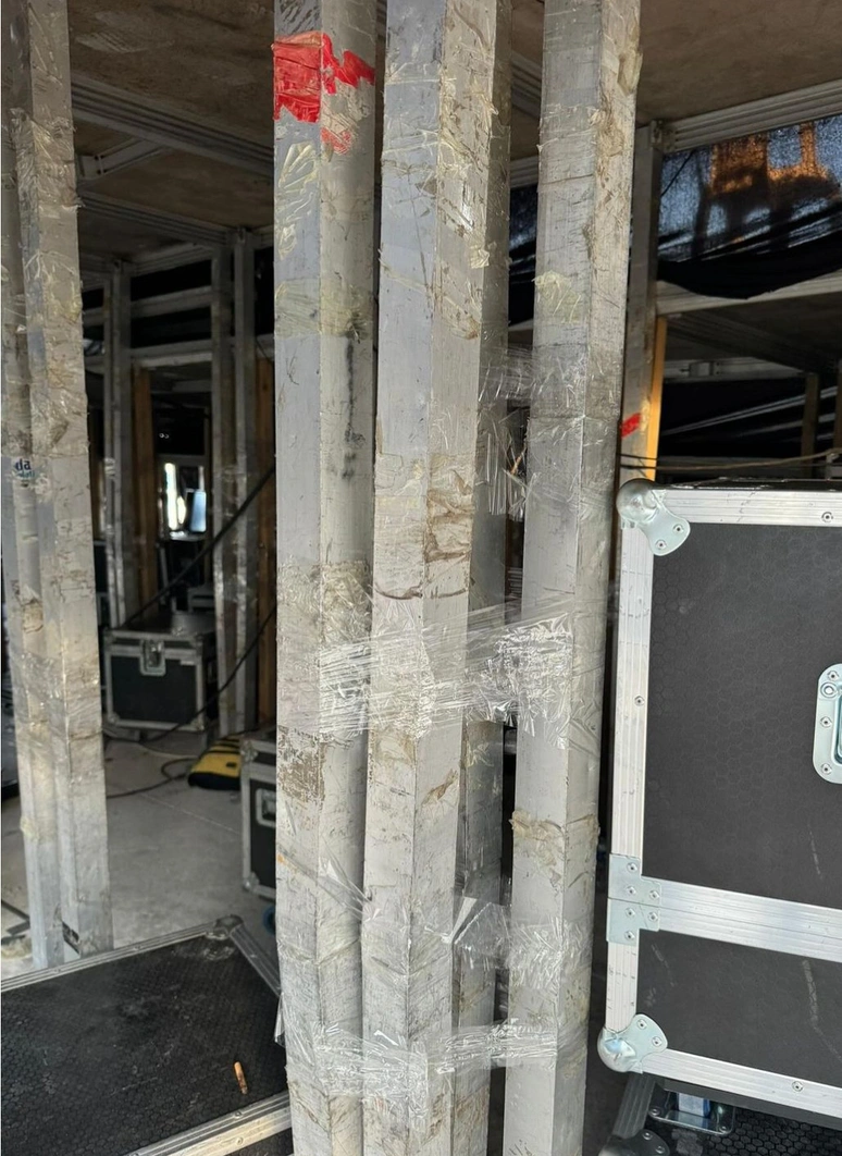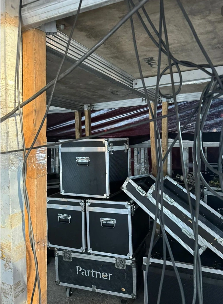 "Tüm ayrıntıları, fotoğraf ve video kaydı ile delillendirildiği üzere sahneyi ayakta tutan sütunlardan bir kısmının ahşaptan yapılmış, bir kısmının kırılmış olduğundan koli bandı ile yapıştırılmış, bir kısmının da, sütunlar birbirini ayakta tutabilsin diye yine koli bandı ile birbirlerine tutuşturulmuş vaziyette olduğu, elektrik kablolarının hiçbir güvenlik önlemi alınmaksızın gelişigüzel sahneden aşağı sarkıtılmış olduğu gibi sair aykırılıklara ilişkin görsellerden sadece birkaç tanesi ekte siz vatandaşlarımızın bilgisine sunulmaktadır."