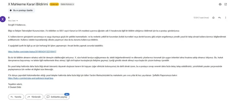 Ancak başvuruları bununla sınırlı kalmadı. Mücahit Ören, CHP Genel Başkanı Özgür Özel'in açıklamaları kapsamında Odatv'nin ilgili sosyal medya paylaşımları için de erişim engeli talebinde bulundu.