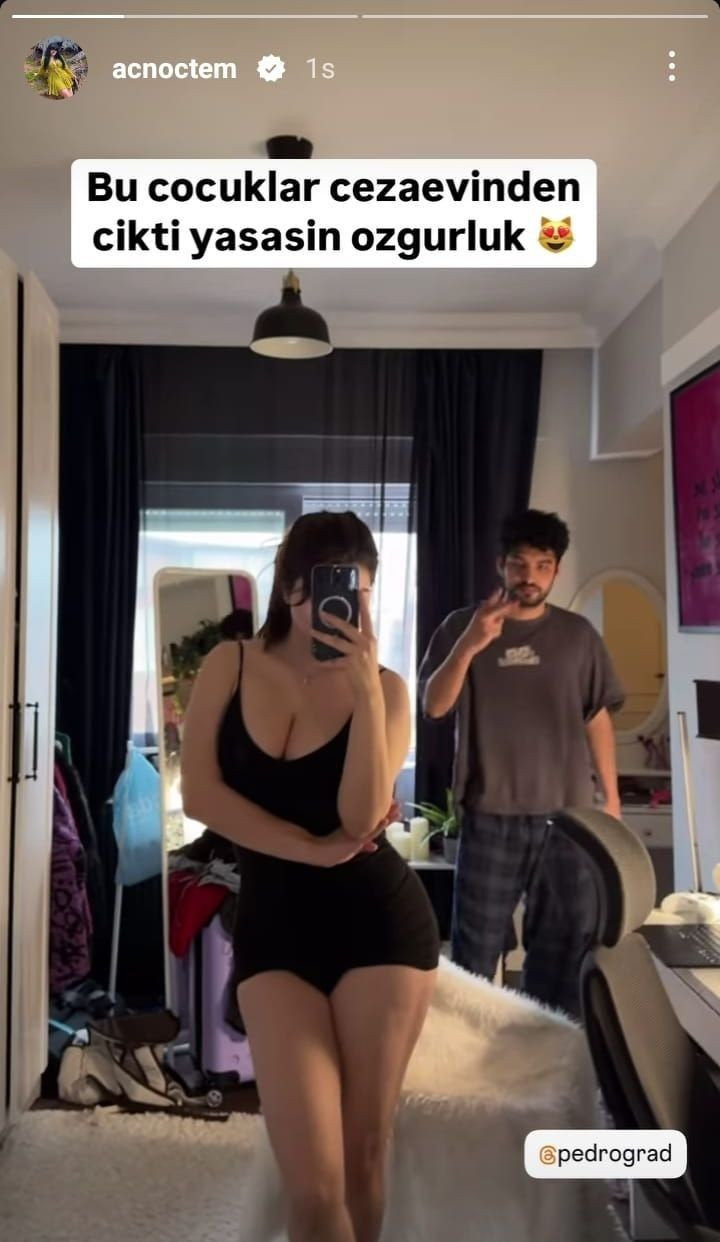 Azra "Bu çocuklar cezaevinden çıktı. Yaşasın özgürlük" diye yazdı.