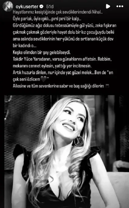 ÖYKÜ SERTER, NİHAL CANDAN İÇİN YÜREKTEN BİR VEDA MESAJI PAYLAŞTI