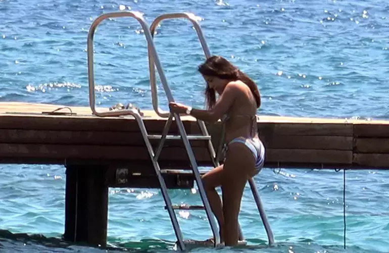 İskelede estetik hareketler yapan Şar, sıcağa daha fazla dayanamayarak kendini Ege’nin serin sularına bıraktı. Uzun süre denizde yüzen oyuncu, tatilin keyfini çıkarırken objektiflere böyle yansıdı.