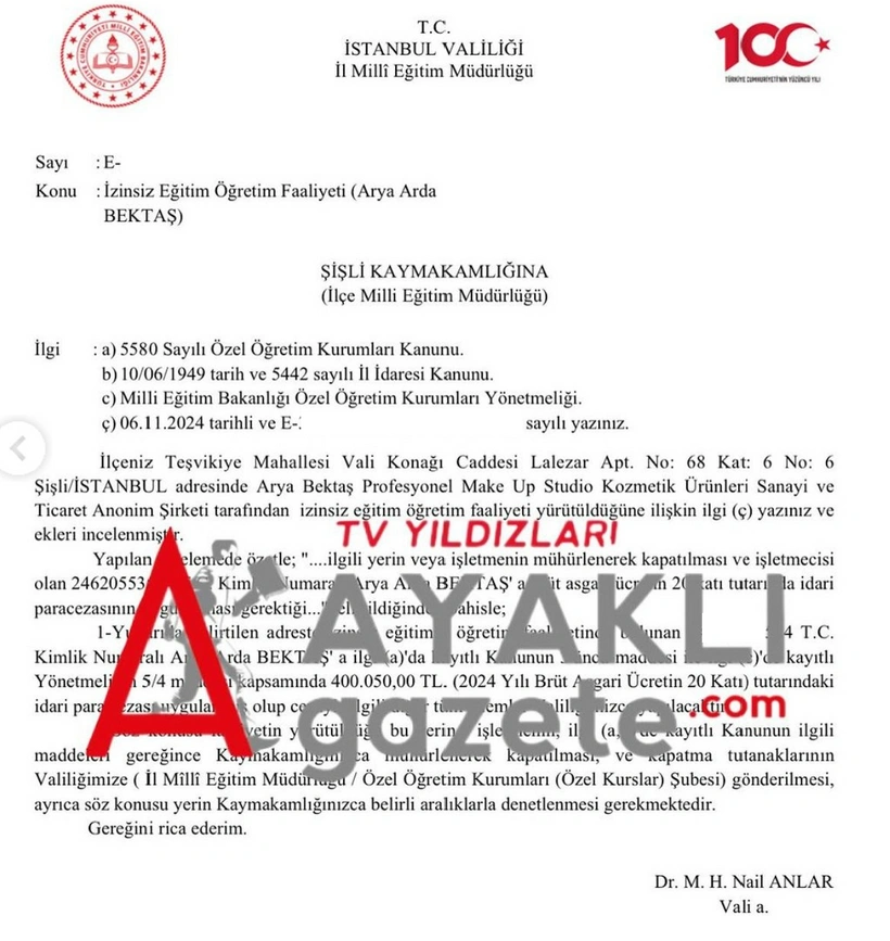 Ayrıca Nişantaşı’nda bulunan işyerinin ise süresiz bir şekilde mühürlenerek kapatıldığı öğrenildi.