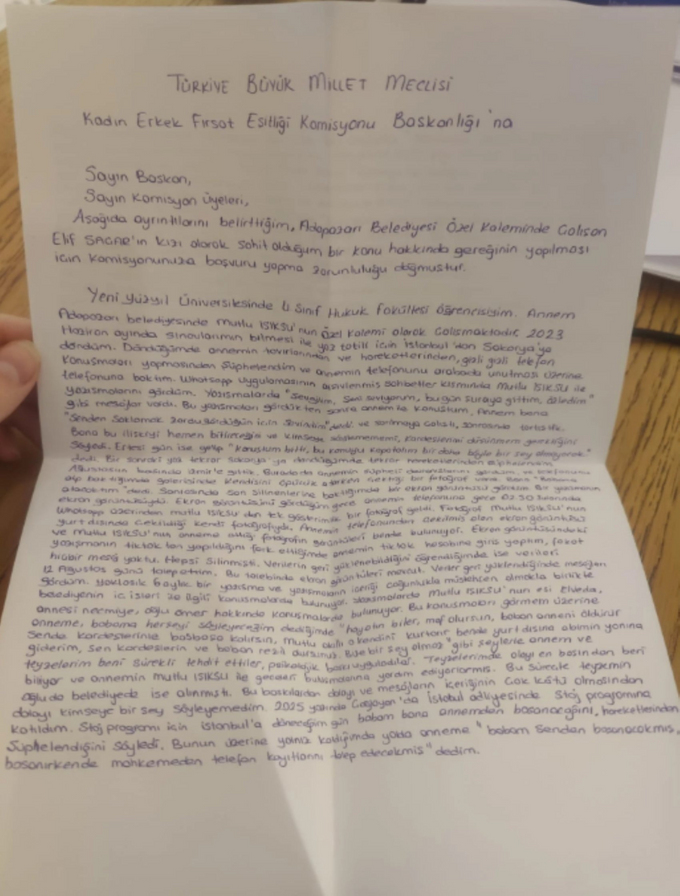 Ceyda Saçar, olayın detaylarını Meclis’e yazdığı dilekçede şu şekilde açıkladı: