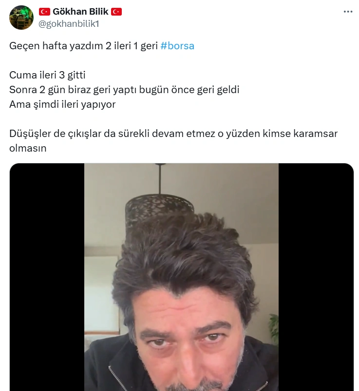 Gökhan Bilik, bir paylaşımında, "Yatırım tavsiyesi değildir ayrı benim söylediklerim tavsiyedir. şimdi ben bu hisseyi tavanlasam sosyal medya karışır. Biz tahta yapıcı değiliz. Biz önüne pişmiş balık koymuyoruz. Oltaya yemi nasıl takman gerektiğini anlatıyoruz" diyor.