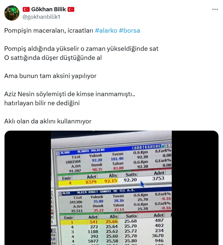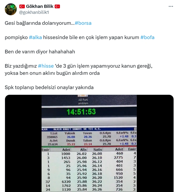Sosyal medyanın yaygınlaşmasıyla sosyal medya platformları, borsa manipülasyonun merkezi haline geldi. Bunun son örneği, X'te paylaşımlar yapan "@gokhanbilik1" adlı Ethem Gökhan Bilik...