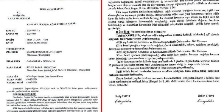 Sara, amcası Cemaleddin Sarar'ın eşi Zehra Sarar'ın, kendine bakacak durumda olmayan eşine bakmadığı, hatta onu dövdüğü iddiasıyla mahkemeden 3 ay evden uzaklaştırma kararı çıkarttırmış.