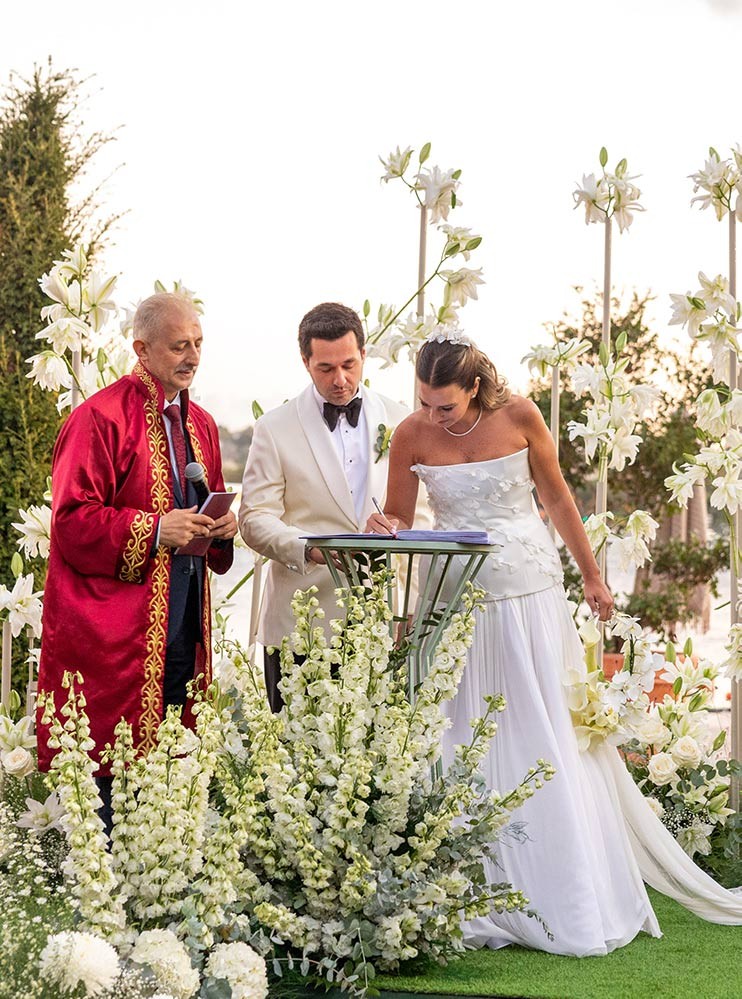 Genç çift, Ata Marin’in büyüleyici ezgileri eşliğinde ve dostlarının tanıklığında “Evet” diyerek hayatlarını birleştirdi. Nikâh şahitliğini ise Simay Kamer’in ağabeyi ve Atasay Mücevherat CEO’su Atasay Kamer üstlendi