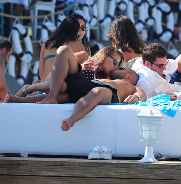 Bodrum'da tatil yapan manken Simge Tertemiz ve avukat sevgilisi Berdan Güngör, önceki gün X Beach'te görüntülendi. Denize girmek yerine gün boyu şezlongda güneşlenmeyi tercih eden ikili, birbirlerini öpücük yağmuruna tuttu.