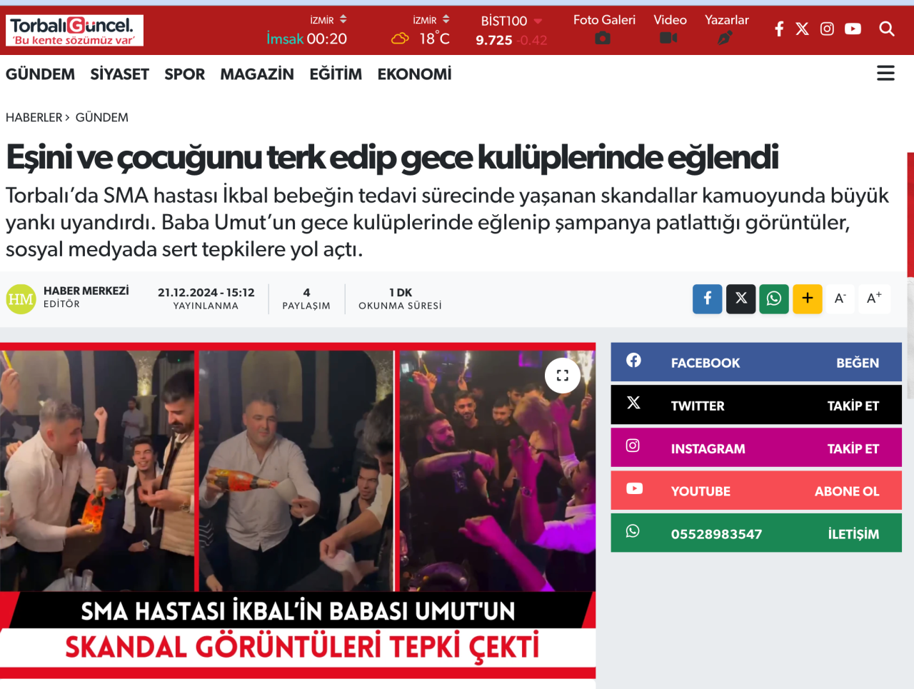 Torbalı Güncel'de yer alan habere göre, SMA hastası İkbal bebeğin tedavi sürecinde Baba Umut Kardeş’in gece kulüplerinde eğlenip şampanya patlattığı görüntüler, sosyal medyada sert tepkilere yol açtı.