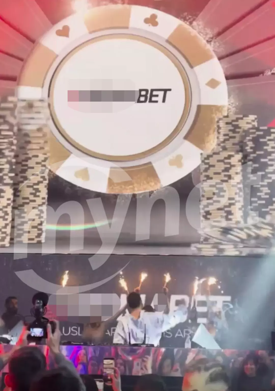 Mynet'in WhastApp ihbar hattına yollanan görüntülerde, Kerimcan Durmaz'ın dj olarak yer aldığı konserde, arkasında bulunan dev ekranda yasa dışı bahis sitelerinin reklamlarının bulunduğu görüldü.