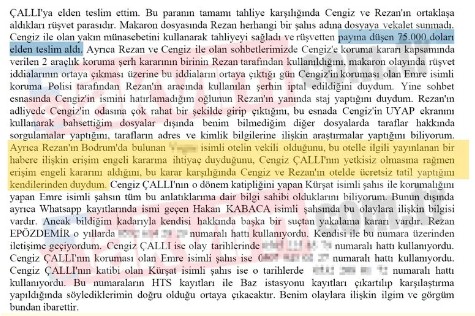 Belirli tahliyeler için aracı paraların savcı Çallı kanalıyla organize edildiği ve bunun içinde 150 bin dolar rakamı geçtiği.